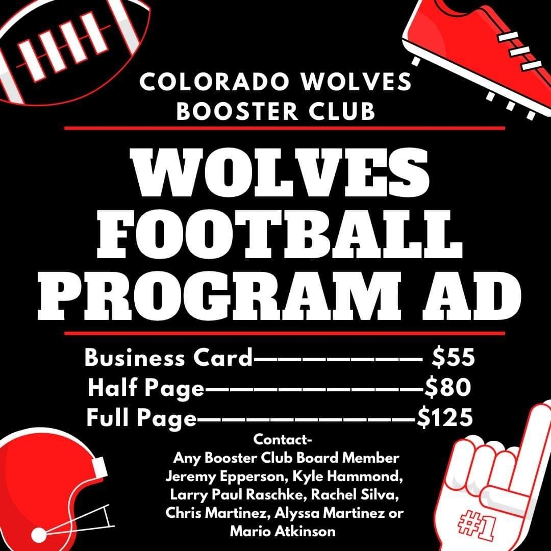 Please contact any booster club member if you would like to have page in this year's football program.